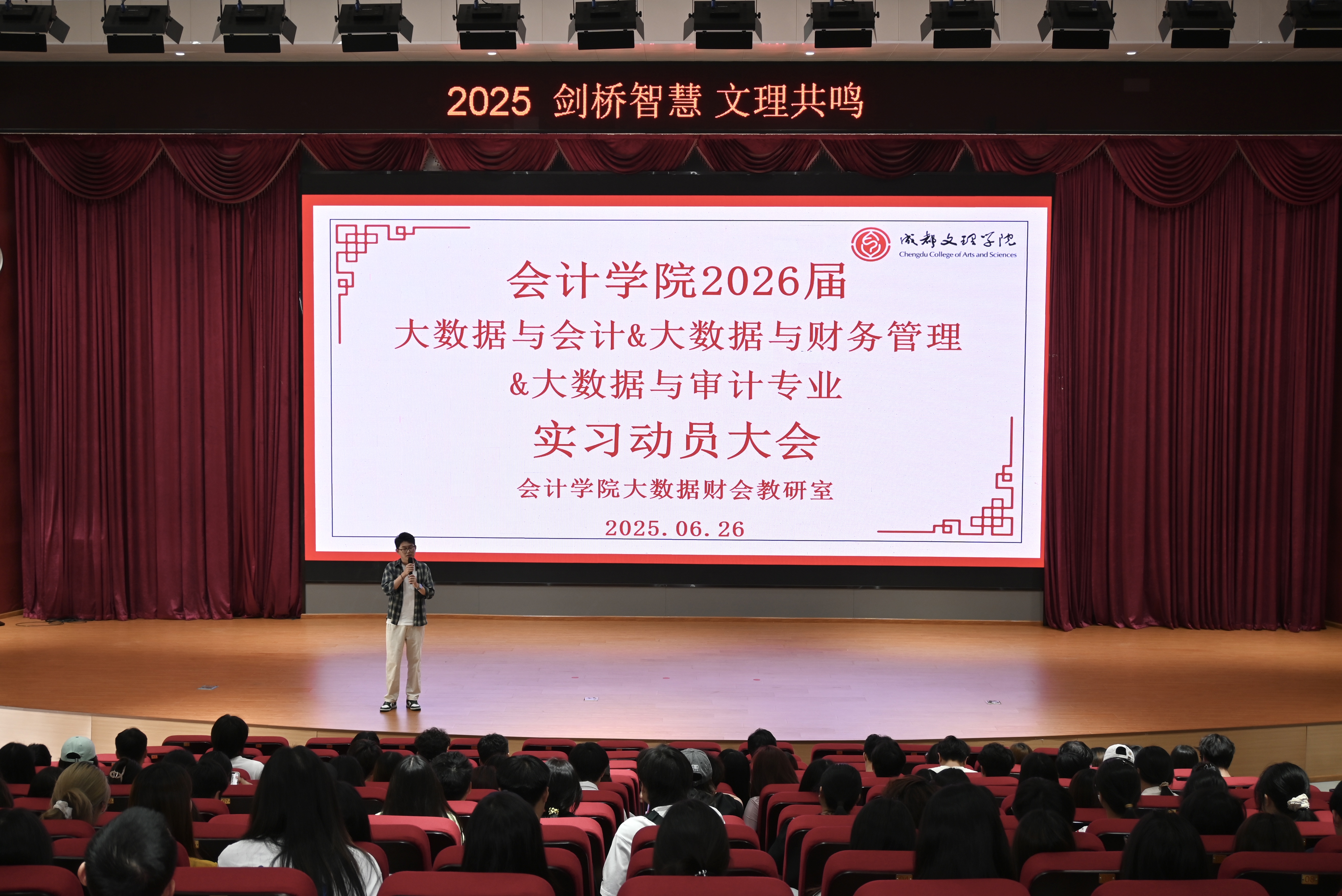 为了确保2026届大数据与会计、大数据与财务管理、大数据与审计专业员工实习工作的顺利进行,williamhill威廉希尔官网于6月26日12:30在文理讲堂召开了实习动员大会。此次会议由大数据财会教研室副主任董秉伟主持,williamhill威廉希尔官网2026届全体专科专业同学参加。