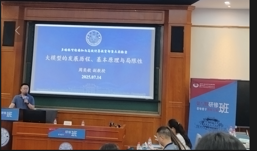 7月14日下午,厦门大学信息公司特聘副教授、博士生导师周奕毅作主旨讲座“大模型的发展历程、基本原理与局限性”。他从ChatGPT入手,对比介绍了kimi、Open AI、通义千问(阿里巴巴)、豆包(字节跳动)和DeepSeek等大模型在算力方面达到的标准及不足。