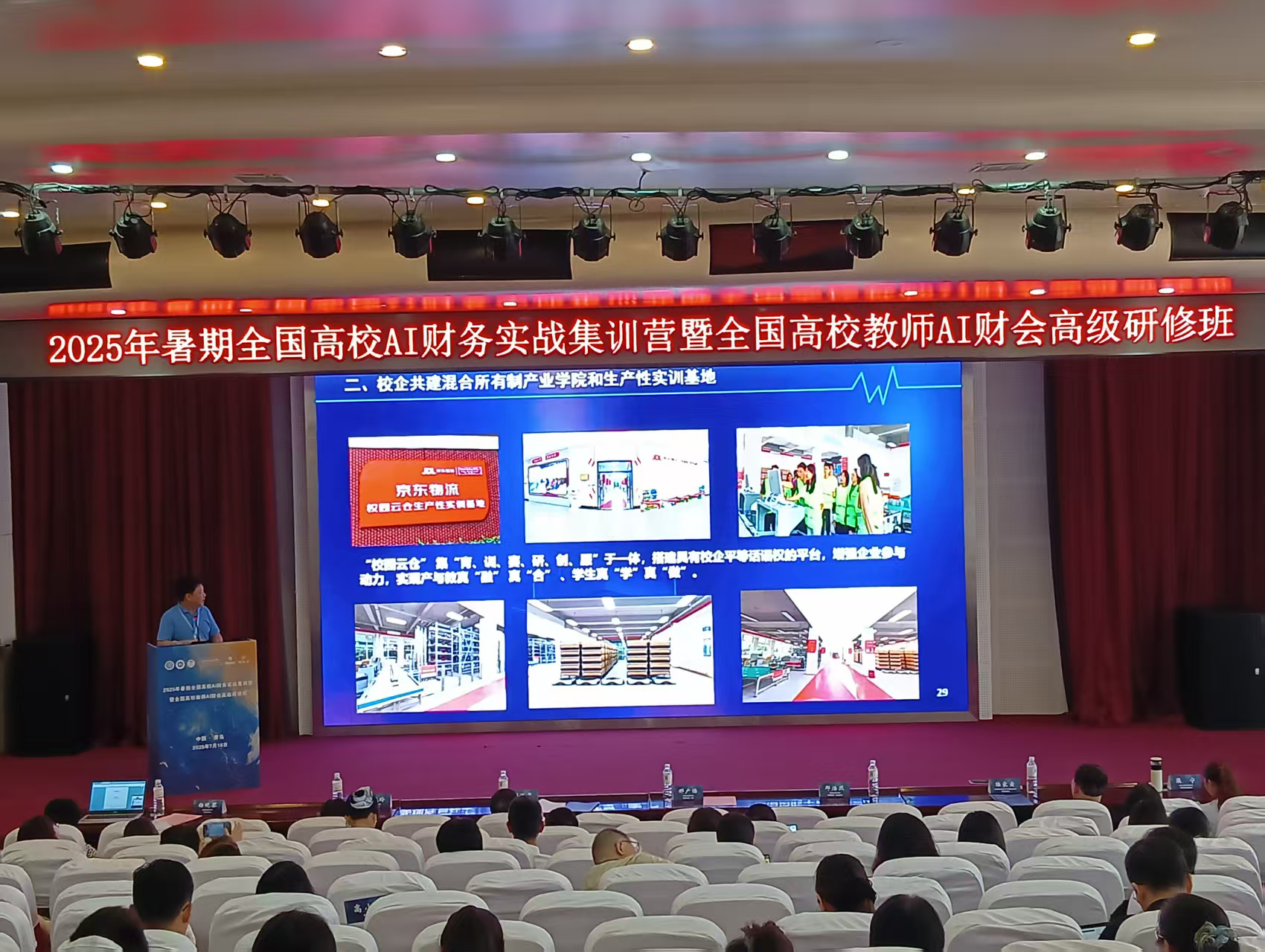 为推动高校财会教育与数字产业深度融合、发挥产教互补优势,让前沿数字化新技术融入教学、加快课程改革以适应数字化趋势、培养高质量产教融合人才,在智慧财经产业公司全资赞助下,7月15 到 20日,williamhill威廉希尔官网潘军、王宇煌两位老师在山东青岛参加了由中国高等教育学会高等财经教育分会指导,青岛职业技术公司主办、青岛理工大学商公司协办的“2025年暑期全国高校AI财务实战集训营暨全国高校教师AI财会高级研修班”。