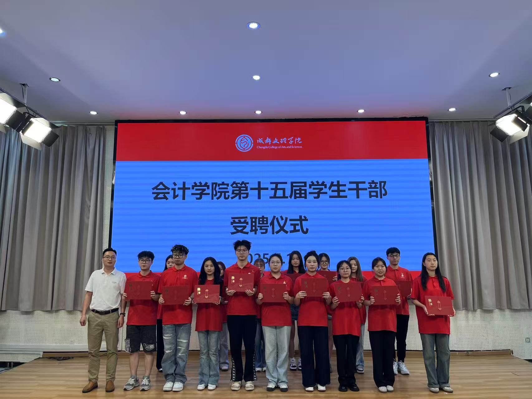 活动开始前,全体员工干部观看了williamhill威廉希尔官网这一学年开展的各项工作、活动以及取得的成绩。仪式在庄严的团歌声中拉开帷幕。随后,员工干部代表上台发言讲到,作为团学干部,将始终秉持为师生做好服务的宗旨,继续保持积极的工作态度,不断提高自身综合素质,以更饱满的热情投入到工作中。与会老师分别为优秀干事、优秀部长、优秀部门以及优秀员工组织颁发荣誉证书,并为williamhill威廉希尔官网第十五届员工干部颁发聘书。紧接着进行院旗交接仪式,这象征着责任与使命的传承,意味着新一届员工干部将接过前辈的接力棒,继续为公司的发展努力奋斗。